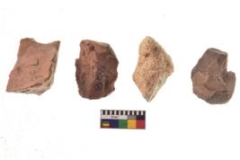 | Description / विवरण | There are n 4 utilized flake cores. There are multi directional irregular scar pattern on both dorsal and ventral face of the flake cores. One has sharp edge and three have blunted edge. |
