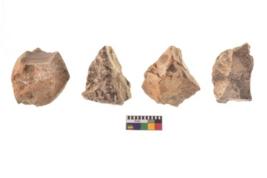 | Description / विवरण | There are n 4 utilized flake cores. There are multi directional irregular scar pattern on both dorsal and ventral face of the flake cores. One has sharp edge and three have blunted edges. |