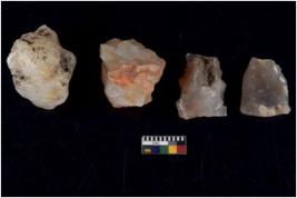 | Description / विवरण | Specimen of flake tools with prominent flaking marks. They are made up of a short flakes with sides trimmed. |