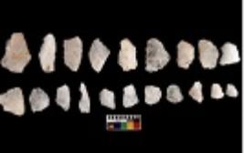 | Description / विवरण | There are n 20 utilized worked flakes; they show multidirectional irregular scar pattern on both dorsal and ventral face of the flakes. Among them some are pen point, blades and triangle. Some are tapering at one end and some are having flat base. Few of them are debitage. |