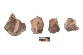| Description / विवरण | There are n 4 utilized flake cores. There are multi directional irregular scar pattern on both dorsal and ventral face of the flake cores. One has sharp edge and three have blunted edges. |