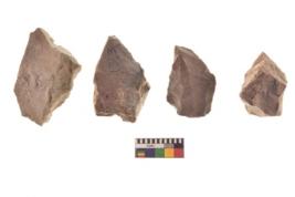 | Description / विवरण | There are n 4 utilized flake cores. There are multi directional irregular scar pattern on both dorsal and ventral face of the flake cores. One has round edge and three have blunted edges. |