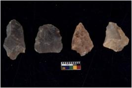 | Description / विवरण | There are n 4 utilized flake cores. There are multidirectional irregular scar pattern on both dorsal and ventral face of the flake cores. One has sharp edges and three have blunted edges. |