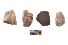 | Description / विवरण | There are n 4 utilized flake cores. There are multi directional irregular scar pattern on both dorsal and ventral face of the flake cores. Two have flat base and two have blunted edges. |