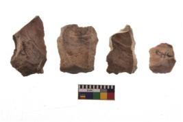 | Description / विवरण | There are n 4 utilized flake cores. There are multi directional irregular scar pattern on both dorsal and ventral face of the flake cores. Two are tapering at one end and two have blunted edges. |