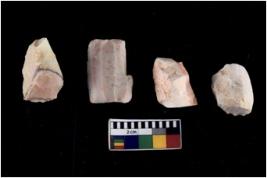 | Description / विवरण | There are n 4 utilized flake cores. There are multidirectional irregular scar pattern on both dorsal and ventral face of the flake cores. One has sharp edges and three have blunted edges. |