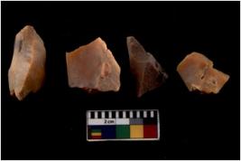 | Description / विवरण | There are n 4 utilized flake cores. There are multidirectional irregular scar pattern on both dorsal and ventral face of the flake cores. One has sharp edges and three have blunted edges. |