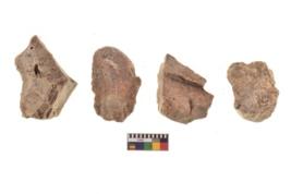 | Description / विवरण | There are n 4 utilized flake cores. There are multi directional irregular scar pattern on both dorsal and ventral face of the flake cores. One has sharp edge and three have blunted edge. |