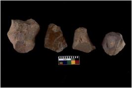 | Description / विवरण | There are n 4 utilized flake cores. There are multidirectional irregular scar pattern on both dorsal and ventral face of the flake cores. One has sharp edges and three have blunted edges. |