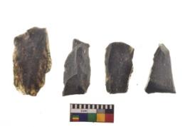 | Description / विवरण | There are n 4 utilized flake cores. There are multi directional irregular scar pattern on both dorsal and ventral face of the flake cores. All of them are tapering at one end. |