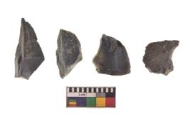| Description / विवरण | There are n 4 utilized flake cores. There are multi directional irregular scar pattern on both dorsal and ventral face of the flake cores. One has sharp edge and three have blunted edge. |