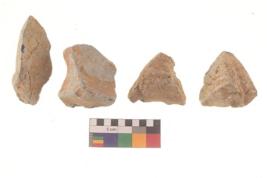 | Description / विवरण | Specimen of a cores with several broad fluted marks. The flake scars are seen on all sides. |