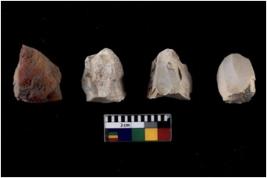 | Description / विवरण | There are n 4 utilized flake cores. There are multidirectional irregular scar pattern on both dorsal and ventral face of the flake cores. One has sharp edges and three have blunted edges. |