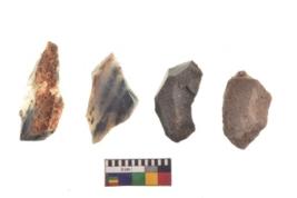 | Description / विवरण | There are n 4 utilized flake cores. There are multi directional irregular scar pattern on both dorsal and ventral face of the flake cores. All of them are tapering at one end. |