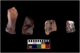 | Description / विवरण | There are n 4 utilized flake cores. There are multidirectional irregular scar pattern on both dorsal and ventral face of the flake cores. One has sharp edges and three have blunted edges. |