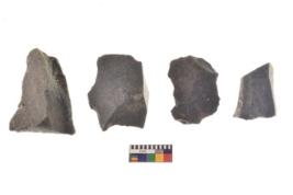 | Description / विवरण | There are n 4 utilized flake cores. There are multi directional irregular scar pattern on both dorsal and ventral face of the flake cores. Two have blunted edges and two have round edges. |