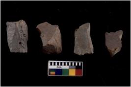 | Description / विवरण | There are n 4 utilized flake cores. There are multidirectional irregular scar pattern on both dorsal and ventral face of the flake cores. One has sharp edges and three have blunted edges. |
