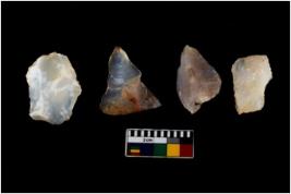 | Description / विवरण | There are n 20 flakes tool; there are multidirectional irregular scar pattern on them; made of short flakes and few have tapering edges. |