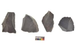 | Description / विवरण | There are n 4 utilized flake cores. There are multi directional irregular scar pattern on both dorsal and ventral face of the flake cores. Three have flat base and one has blunted edge. |