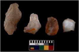 | Description / विवरण | There are n 4 cores; there are multidirectional irregular scar pattern on them. The reverse bulb and platform can be seen. |