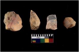 | Description / विवरण | There are n 4 utilized flake cores. There are multidirectional irregular scar pattern on both dorsal and ventral face of the flake cores. One has sharp edges and three have blunted edges. |