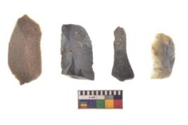 | Description / विवरण | There are n 4 utilized flake cores. There are multi directional irregular scar pattern on both dorsal and ventral face of the flake cores. All of them are tapering at one end. |