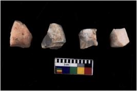 | Description / विवरण | There are n 4 utilized flake cores. There are multidirectional irregular scar pattern on both dorsal and ventral face of the flake cores. One has sharp edges and three have blunted edges. |