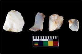 | Description / विवरण | There are n 4 utilized flake cores. There are multidirectional irregular scar pattern on both dorsal and ventral face of the flake cores. One has sharp edges and three have blunted edges. |