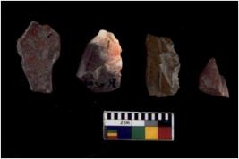 | Description / विवरण | There are n 4 utilized flake cores. There are multidirectional irregular scar pattern on both dorsal and ventral face of the flake cores. One has sharp edges and three have blunted edges. |