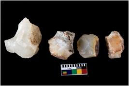| Description / विवरण | There are n 4 utilized flake cores. There are multidirectional irregular scar pattern on both dorsal and ventral face of the flake cores. One has sharp edges and three have blunted edges. |