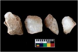 | Description / विवरण | There are n 4 utilized flake cores. There are multidirectional irregular scar pattern on both dorsal and ventral face of the flake cores. One has sharp edges and three have blunted edges. |