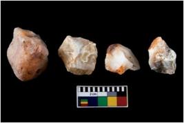 | Description / विवरण | There are n 4 utilized flake cores. There are multidirectional irregular scar pattern on both dorsal and ventral face of the flake cores. One has sharp edges and three have blunted edges. |