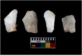 | Description / विवरण | There are n 4 utilized flake cores. Three are tapering at one end and one has blunted edge. |