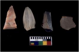 | Description / विवरण | Specimen of flake tools with prominent flaking marks. They are made up of a short flakes with sides trimmed. |