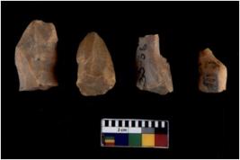 | Description / विवरण | There are n 4 utilized flake cores. There are multidirectional irregular scar pattern on both dorsal and ventral face of the flake cores. One has sharp edges and three have blunted edges. |