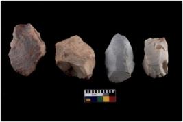 | Description / विवरण | There are n 4 utilized flake cores. There are multidirectional irregular scar pattern on both dorsal and ventral face of the flake cores. One has sharp edges and three have blunted edges. |