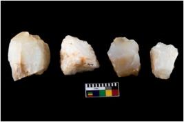 | Description / विवरण | There are n 4 utilized flake cores. There are multidirectional irregular scar pattern on both dorsal and ventral face of the flake cores. One has sharp edges and three have blunted edges. |
