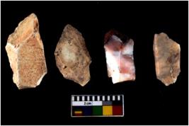 | Description / विवरण | There are n 4 utilized flake cores. There are multidirectional irregular scar pattern on both dorsal and ventral face of the flake cores. One has sharp edges and three have blunted edges. |