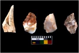 | Description / विवरण | Specimen of flake tools with prominent flaking marks. They are made up of a short flakes with sides trimmed. |