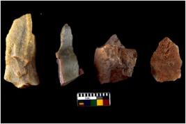 | Description / विवरण | There are n 4 utilized flake cores. There are multidirectional irregular scar pattern on both dorsal and ventral face of the flake cores. One has sharp edges and three have blunted edges. |