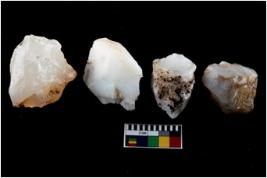 | Description / विवरण | There are n 4 utilized flake cores. There are multidirectional irregular scar pattern on both dorsal and ventral face of the flake cores. One has sharp edges and three have blunted edges. |
