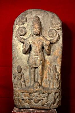 | Description / विवरण | Surya holding his two lotuses. He is probably accompanied by his usual attendants Danda and Pingala on his left and right sides. The pedestal consists of his chariot of seven horses driven by Aruna. |