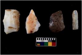 | Description / विवरण | There are n 4 cores; there are multidirectional irregular scar pattern on them. The reverse bulb and platform can be seen. |