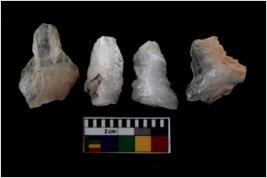 | Description / विवरण | There are n 4 utilized flake cores. One is tapering at one end and three have blunted edges. |