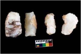 | Description / विवरण | There are n 4 utilized flake cores. There are multidirectional irregular scar pattern on both dorsal and ventral face of the flake cores. One has sharp edges and three have blunted edges. |