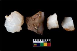 | Description / विवरण | There are n 4 utilized flake cores. There are multidirectional irregular scar pattern on both dorsal and ventral face of the flake cores. One has sharp edges and three have blunted edges. |