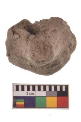 | Description / विवरण | specimen of a circular wheel without perforation, conical top, rough surface. |