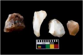 | Description / विवरण | There are n 4 utilized flake cores. There are multidirectional irregular scar pattern on both dorsal and ventral face of the flake cores. One has sharp edges and three have blunted edges. |