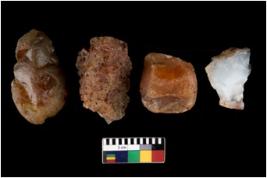 | Description / विवरण | There are n 4 flake cores. All of them are fully fluted flake cores without any trace of crested ridge flakes. Some are tapering at one end and some have sharp edges. |