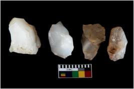 | Description / विवरण | There are n 4 utilized flake cores. There are multidirectional irregular scar pattern on both dorsal and ventral face of the flake cores. One has sharp edges and three have blunted edges. |